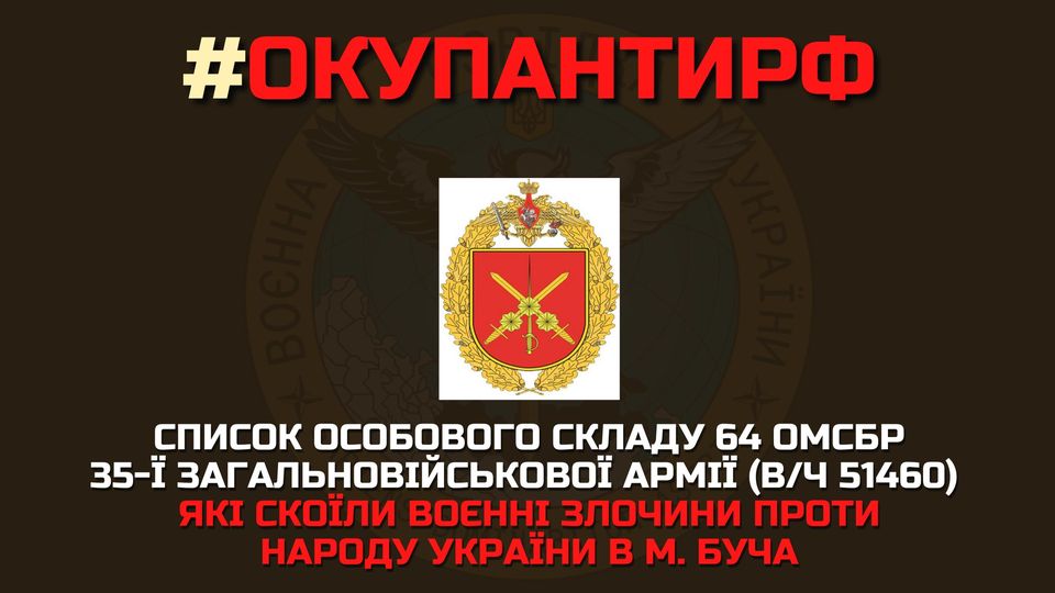 Розвідка оприлюднила список військовослужбовців 64 окремої мотострілецької бригади РФ, які скоювали злочини в Бучі