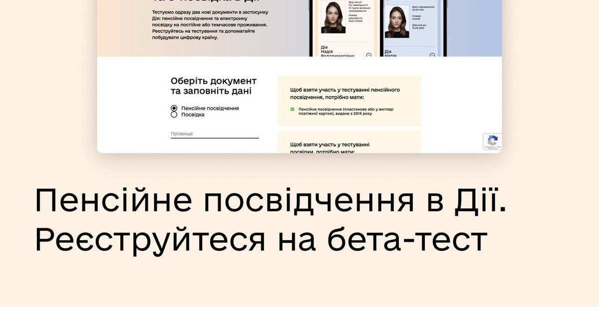 Міністерство цифрової трансформації України запускає бета-тестування у застосунку "Дія" пенсійного посвідчення та посвідки на тимчасове або постійне проживання.