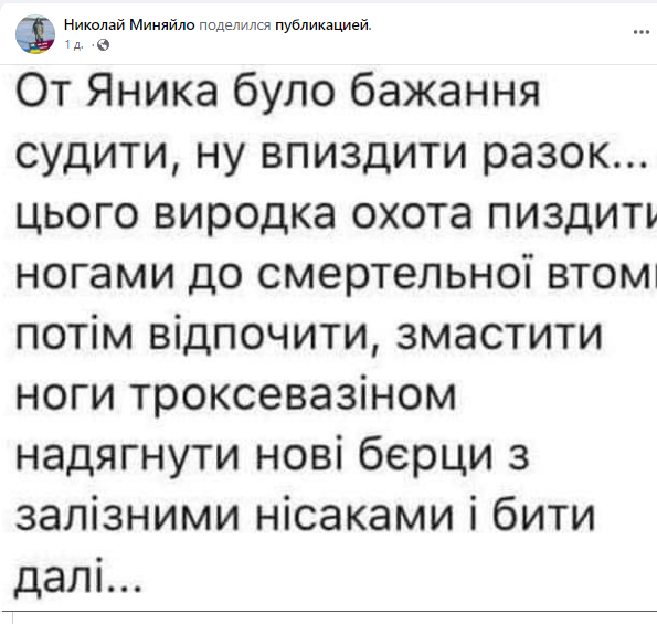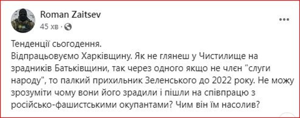 Він зазначив: "У Житомирі обласна державна адміністрація нагородила орденами двох колаборантів - депутата від ОПЗЖ, а раніше і від ПР Павленка і екс-главу ОДА часів Януковича - від Харківських угод до розстрілу Майдану Рижука. Хочеться спалити їх всіх нахєр. Вони цього заслуговують. І нагороджених, і тих, хто додумався до такого - у кого не мізки, а гівно".