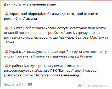 Спільнота, посилаючись на низку інформаційних ресурсів, зазначає, що 20 вересня біля Бахмута було ліквідовано 41-річного командира штурмового загону ПВК "Вагнера" Олексія Нагіна - "Терека".