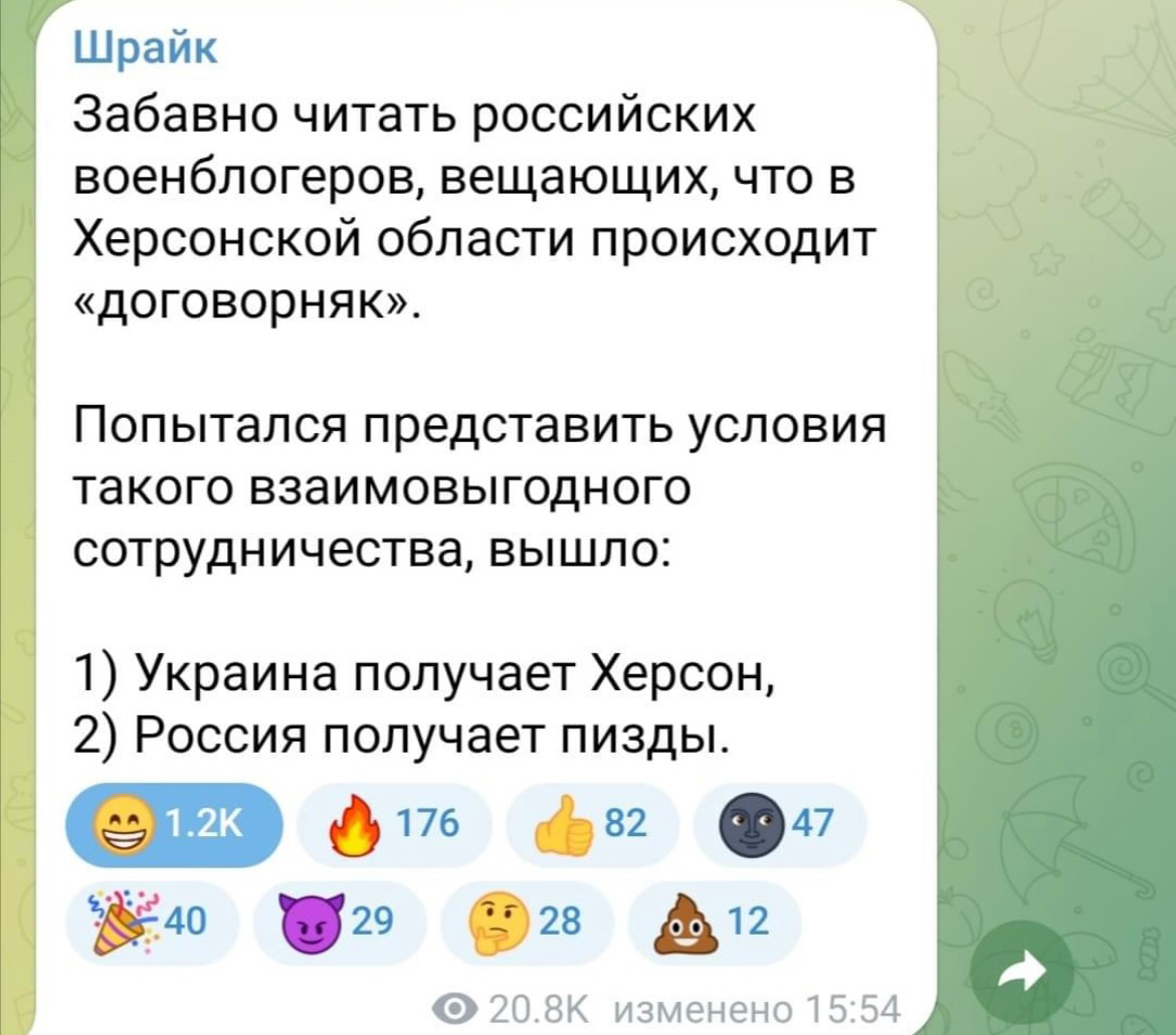 Нагадуєм, 9 листопада у Мінобоони РФ заявили про рішення відвести окупаційні війська в Херсонській області на лівий берег Дніпра.