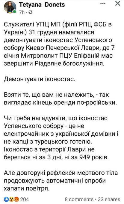 Раніше міністр культури та інформаційної політики Олександр Ткаченко повідомив, що Заповідник "Києво-Печерська лавра" надав ПЦУ дозвіл на проведення богослужінь на один день 7 січня.