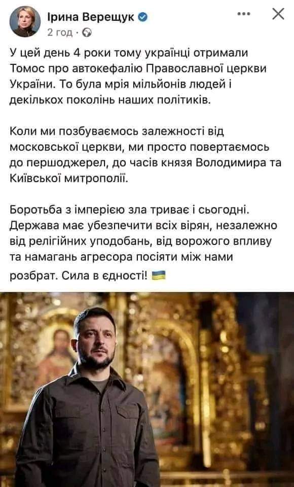 "Кожен президент України рано чи пізно (очевидно, крім Януковича) розуміє важливість духовної незалежності України. Мені здається, що президент (Зеленський. - Ред.) достатьно глибоко осягнув цю проблему. Безумовно, заслуга його очевидна", - визнав він.