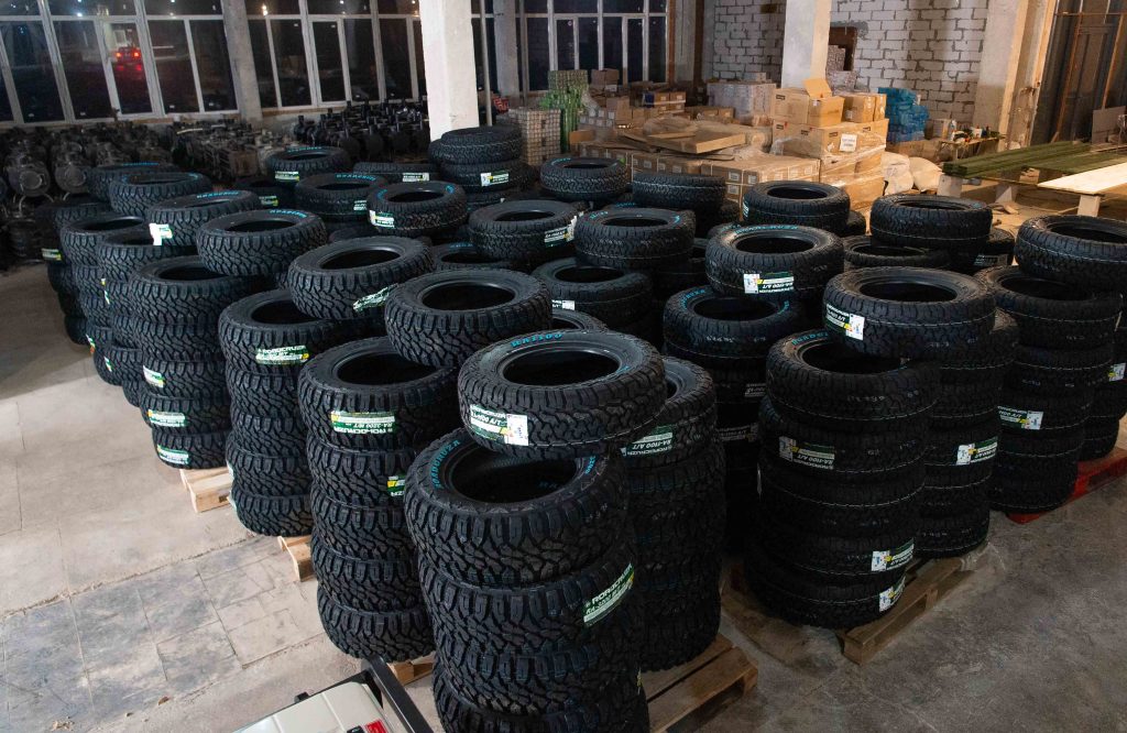 Також для "волонтерських" пікапів та бусів, якими користуються військові, куплені "болотні" шини – вони дозволять автівкам їздити по бездоріжжю. Ця гума дуже затребувана на фронті – кажуть волонтери. "Наші пікапи, наші буси потребують шин. Зараз тут більше 250 шин, які терміново їдуть на фронт", – сказав Порошенко.