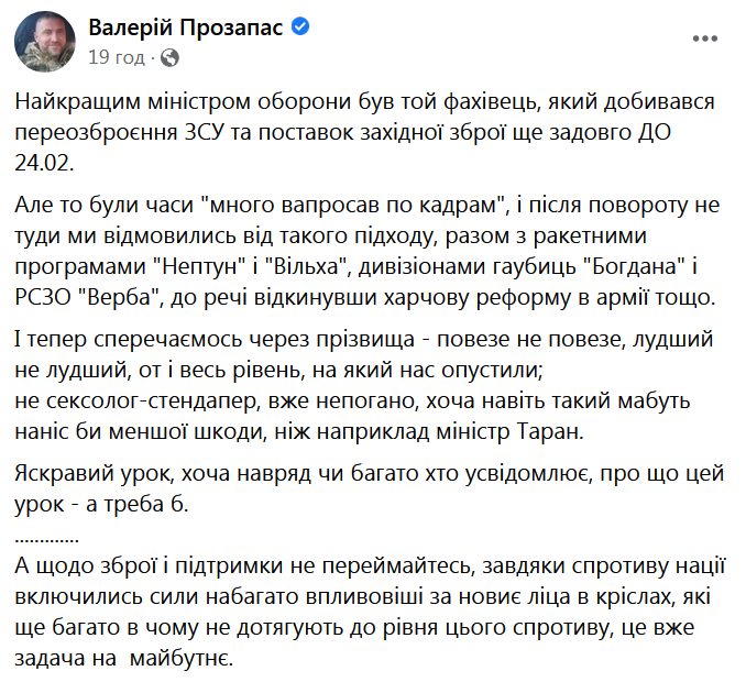 "Якщо очільник міністерства допустив такий медійний скандал з закупками і продуктів харчування, і були питання щодо закупок озброєння, це все в сукупності дозволило в політичну площину дозволило поставити питання, що міністр має нести політичну відповідальність", - сказав Веніславський.