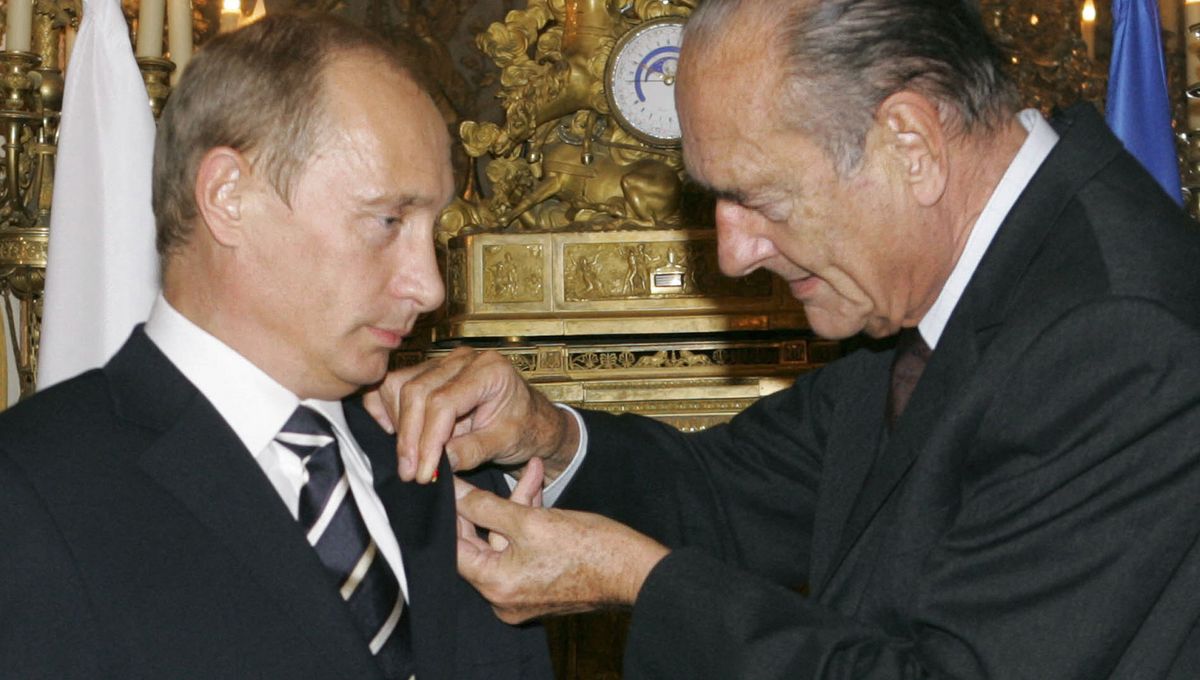 Путін отримує Орден почесного легіону від тодішнього президента Франції Жака Ширака