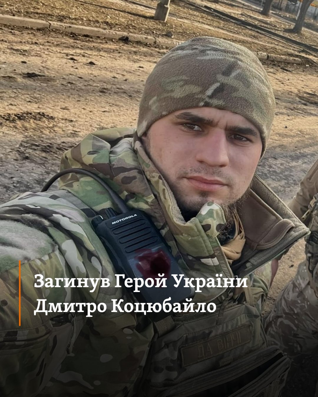 Він зазначив: "Сьогодні в бою загинув "Да Вінчі", герой України, доброволець, людина-символ, людина-хоробрість, – Дмитро Коцюбайло. Боєць 67-ї окремої механізованої бригади, комбат. Загинув в бою під Бахмутом, у бою за Україну.