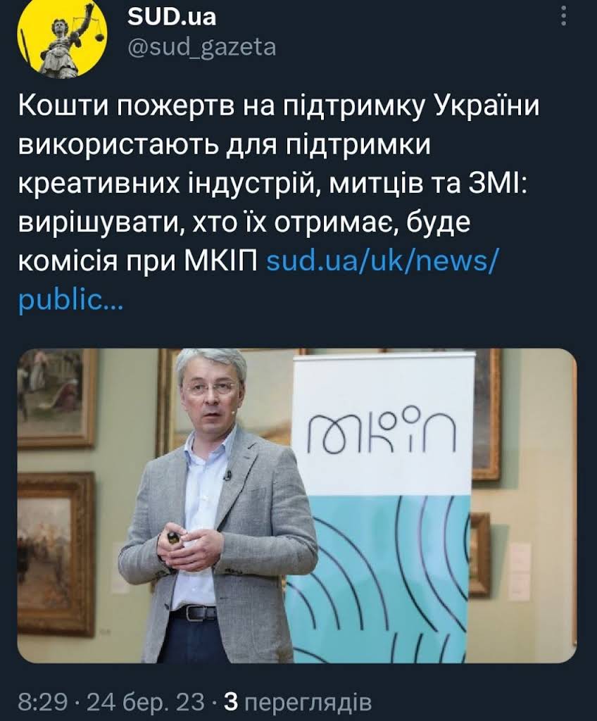 Все ясно, гроші з окремого рахунку United24 буде отримувати квартал 95 на свою лайнотворчіть.