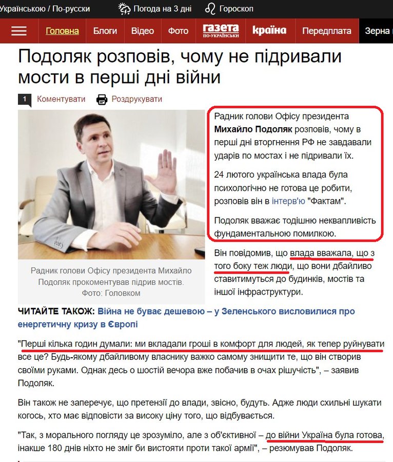 Це признання Подоляка годиться для Гаазького Трибуналу! Фактично, заборонивши підривати мости, влада Зеленського вирішила пустити російських орків в Україну. При тому, орки на руках мали розстрільні списки тих, хто був Зеленському в опозиції. Як зручно!