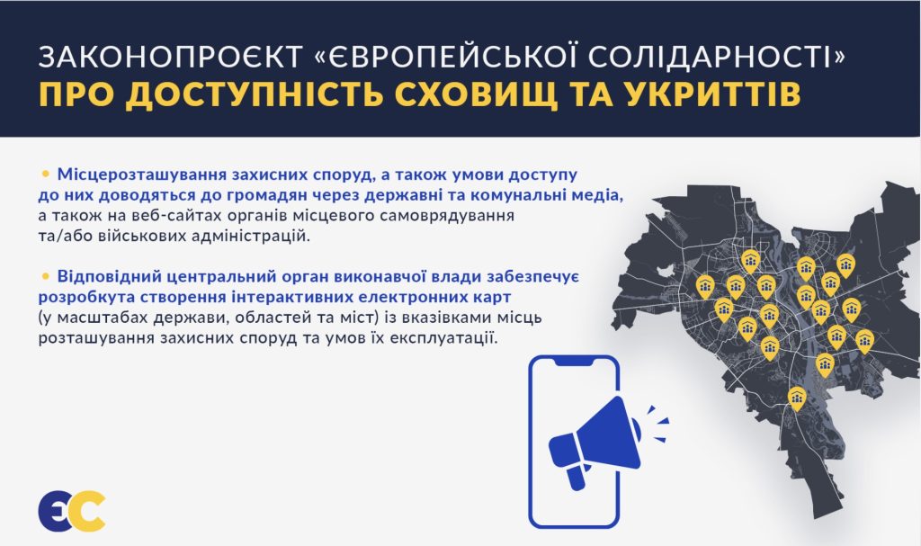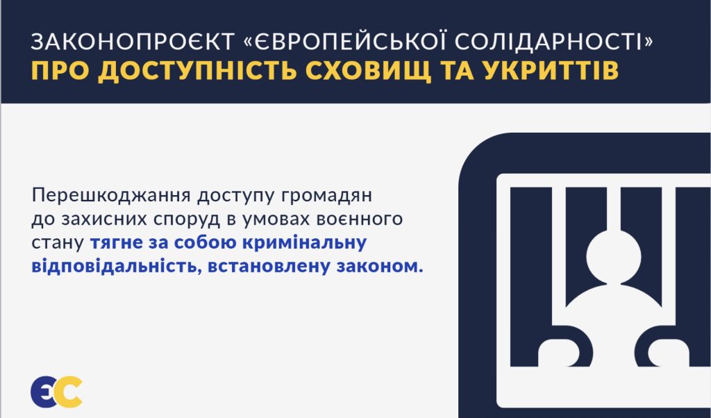 Фракція "Європейська Солідарність" ініціює законопроєкт про доступність сховищ та укриттів.