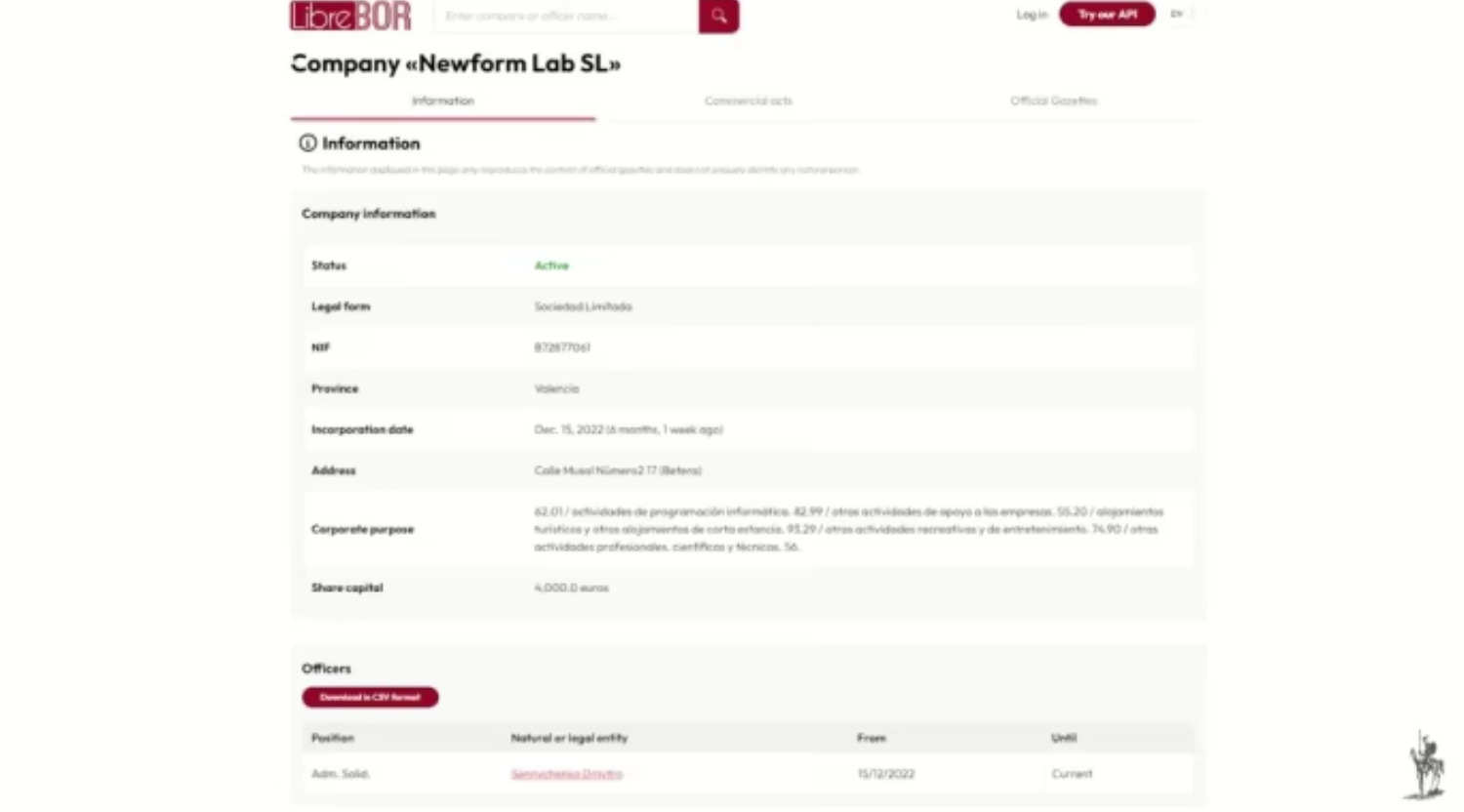 За даними видання, компанію зареєстровано за адресою в житловому комплексі на околиці Валенсії.