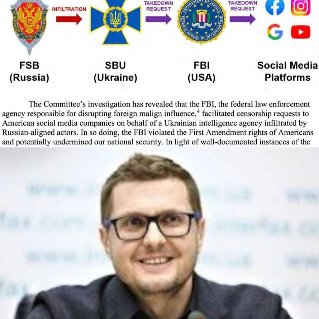 Prozapas: "Комітет з розслідування виявив, що ФБР відповідальні за злочинний іноземний вплив на цензуру американських соцмереж через російських агентів, які проникли в СБУ" (с). Це зі звіту Комітету з питань правосуддя Уряду США.