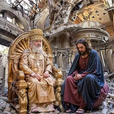 Патріарх Кирилко пояснює Ісусу, що це був військовий собор, побудований НАТО з лабораторією з виробництва бойових комарів.