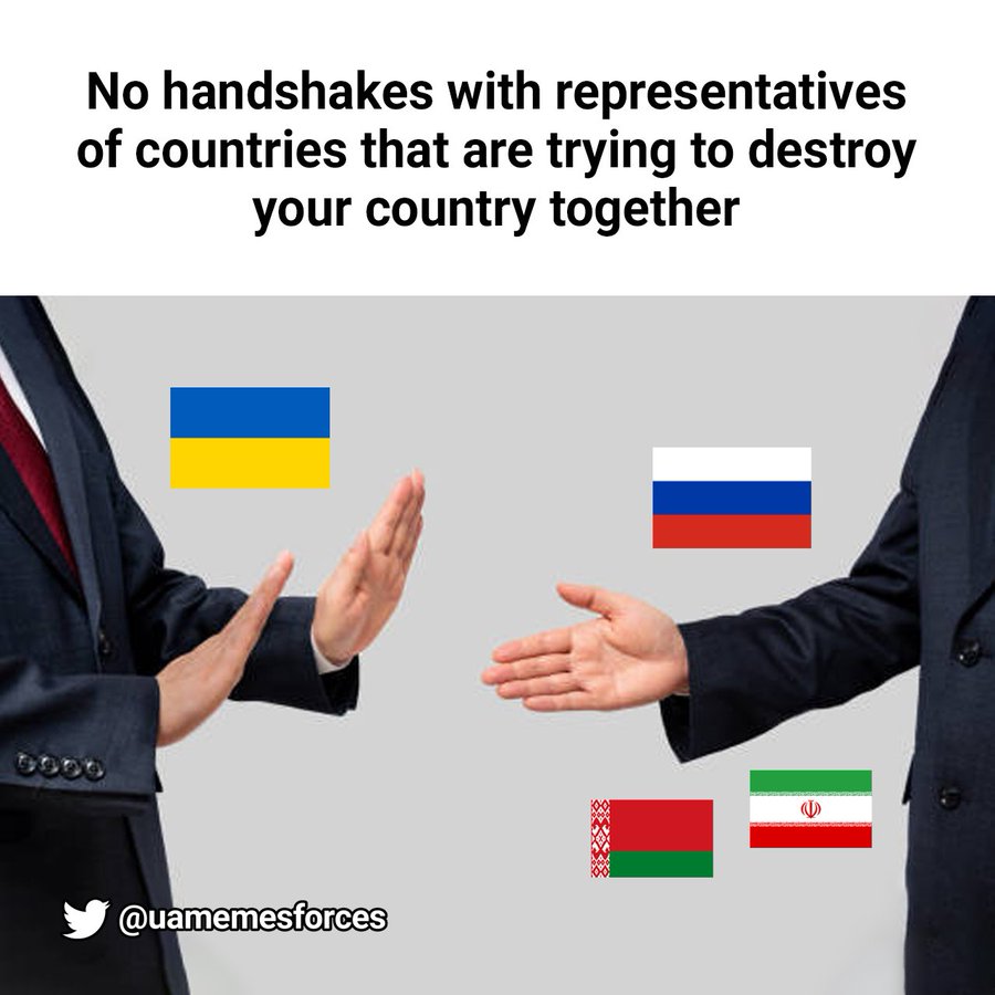Невже наші дипломати і спортивні чиновники не можут виставии умову - змагання змаганнями, але не має буи ніяких обнімань чи рукопотискань з представниками країни-агресора, країни-вбивці?