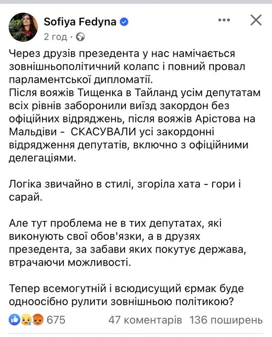 Тим часом 26 липня в Офісі генерального прокурора повідомили про початок розслідування законності виїзду "слуги" Арістова на Мальдіви під час війни. А співробітники СБУ та ДБР прийшли до нардепа з обшуками, у ході якого знайшли закордонний паспорт депутата з відмітками про відвідини Мальдів.