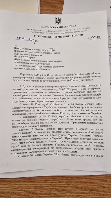 Завєтував незаконне рішення Полтавської міської ради. Але всім начхати. Фарс від партії влади продовжується.