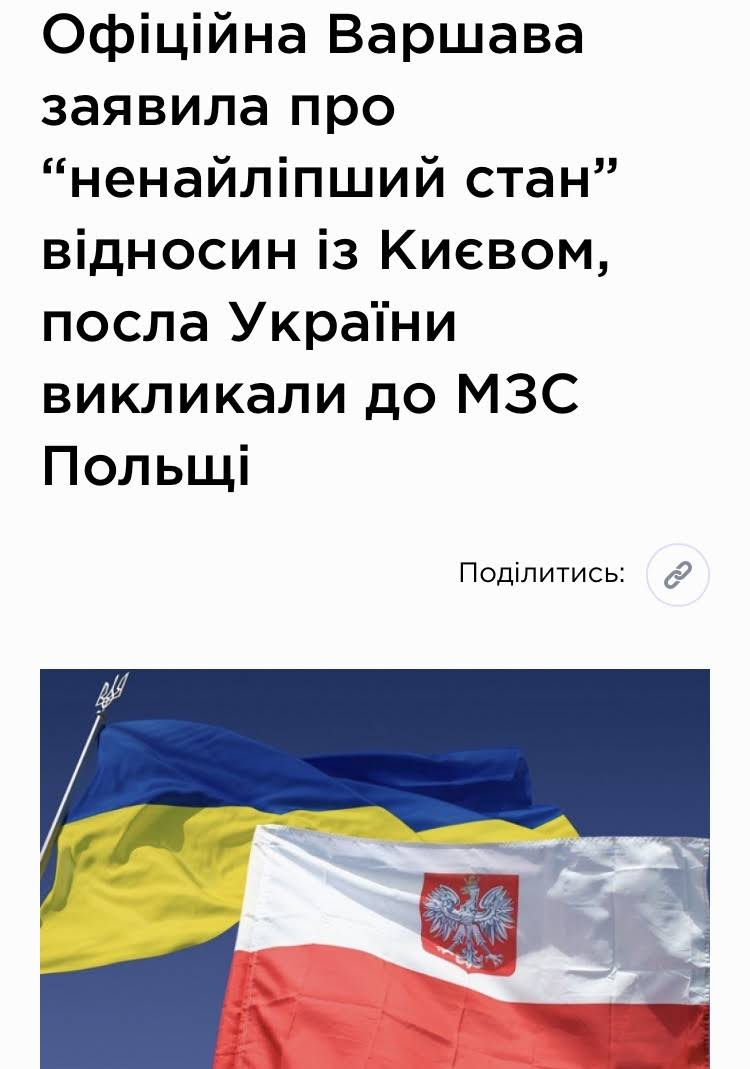 Наш стратегічний європейський союзник - Польща, допомогу якої важко переоцінити за останні 17 місяців, каже, що відносини між нашими країнами «останнім часом не найкращі».