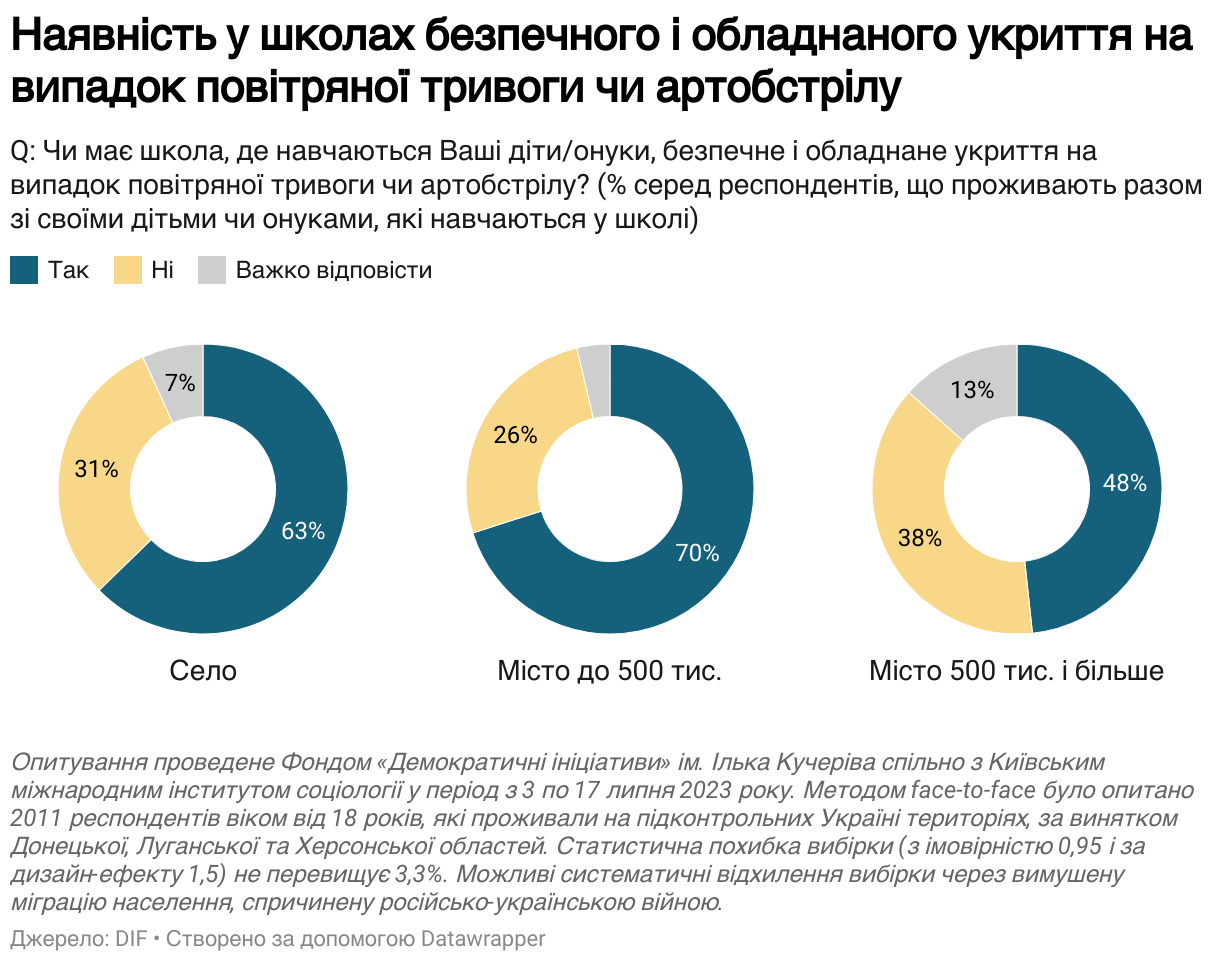 Учасники опитування сказали, що безпечні та обладнані укриття мають близько 62% шкіл.