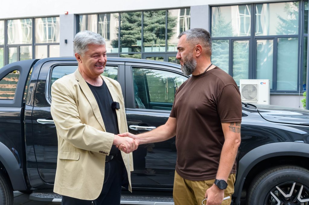 Два ударні дрони "Кажан" та повнопривідний пікап JAC передав Петро Порошенко військовослужбовцю 82-ї бригади ДШВ Олексію Петрову з позивним "Кіт".