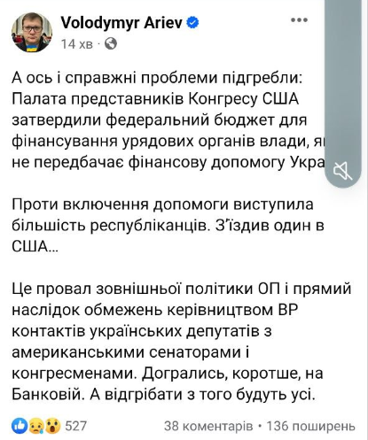 Як повідомлялося, Палата представників Конгресу Сполучених Штатів Америки підтримала законопроєкт про тимчасовий бюджет для уряду на 45 днів на тлі потенційного шатдауну. Документ не включає додаткового фінансування для допомоги Україні.