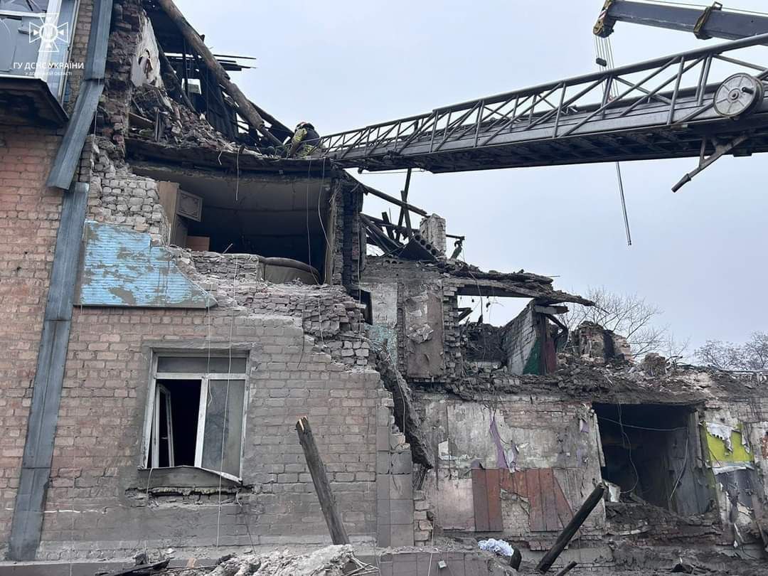 У місті Новогродівка Донецької області продовжуються пошуково-рятувальні роботи на місці зруйнованого російською ракетою будинку.