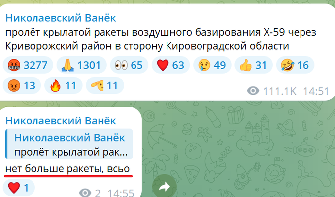 Російські загарбники випустили ракету, яка летить у бік Кривого Рогу.