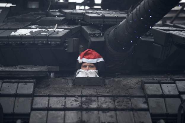 Екіпаж українського танка Т-64, який воює під Бахмутом, вбрався на Різдво.