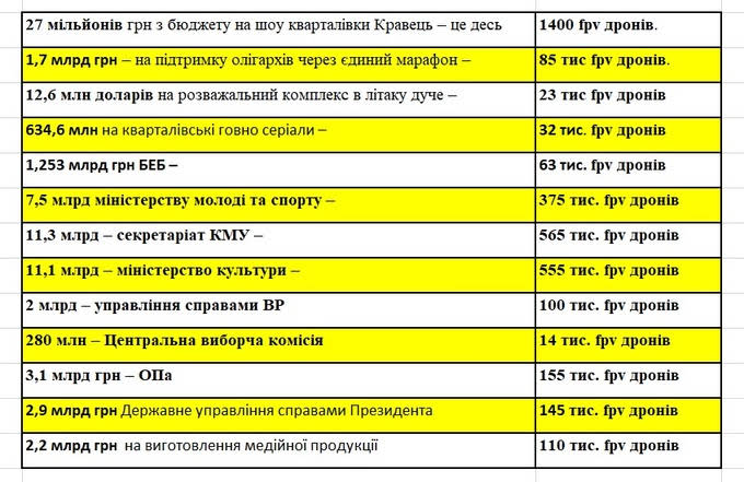 "Тобто 10 відсотків кошторису, – найбільше серед усіх міст України. А не 1 відсоток, як дехто бреше і маніпулює! Із цих 7 мільярдів майже 1 мільярд пішов на закупівлю військовими дронів різних типів. А також місто виділило кошти та закупило, за зверненням військових, засоби радіоелектронної боротьби, які сьогодні ефективно захищають Київ", - зазначив Кличко.
