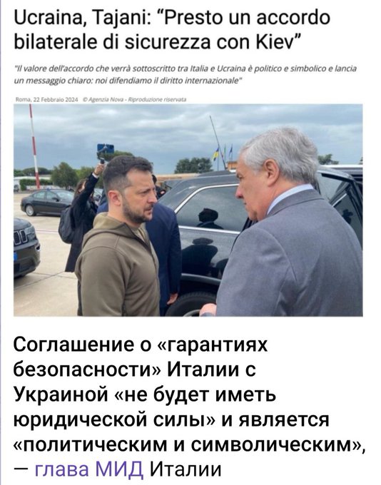 Салямі в спину! Антоніо Таяні: «Наша угода - як і ті, що уклали Франція, Німеччина та Велика Британія, - не матиме обов'язкової юридичної сили, жодних фінансових чи міжнародно-правових зобов'язань. У ній немає автоматичних гарантій політичної чи військової підтримки»