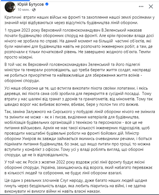 В тому, що ми відступаємо винен не той, хто зі своєю Ставкою з кротами втручається в військові справи, а Залужний.