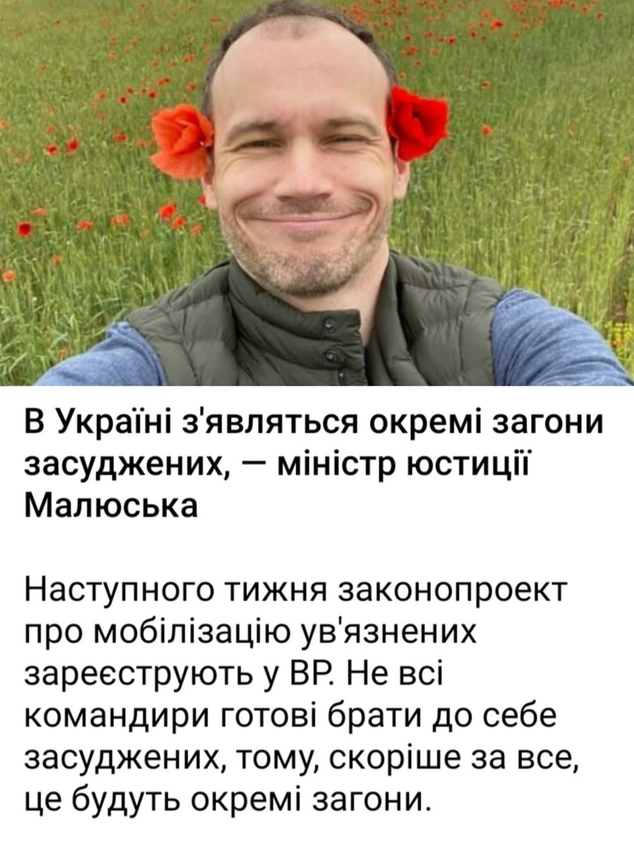 "Не всі командири військові готові брати засуджених та ув'язнених до себе, але ми не будемо і не плануємо нікому нав'язувати таких мобілізованих. Скоріш за все, це будуть окремі загони", - пояснив Малюська.
