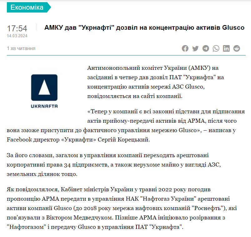 Як тільки "арештували" медведчука, майже одразу стало зрозуміло, що з "арештованих активів" державі не дістанеться ні копійки і майже гарантовано будуть рейдерски захоплені Коломойським, який давно поклав око на "трубу". Ну ось. АЗС Glusco тепер власність Бені. Банально аж сльози