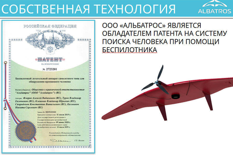 Так, за підсумками "Одіссеї" п’ятеро з 6 учасників команди зареєстрували патент, який так і називається: "Безпілотний літальний апарат літакового типу для виявлення людини, яка зникла". Тепер цей патент – один із елементів презентацій "Альбатроса" для потенційних клієнтів.