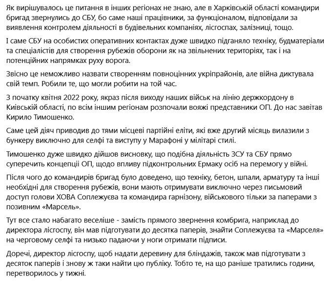укріпрайони навколо Харкова, «Марсель» та Соплежуєв сказали що ні. Я назвав іх «селфі-палками» та безумними. Зняли мене через тиждень.
