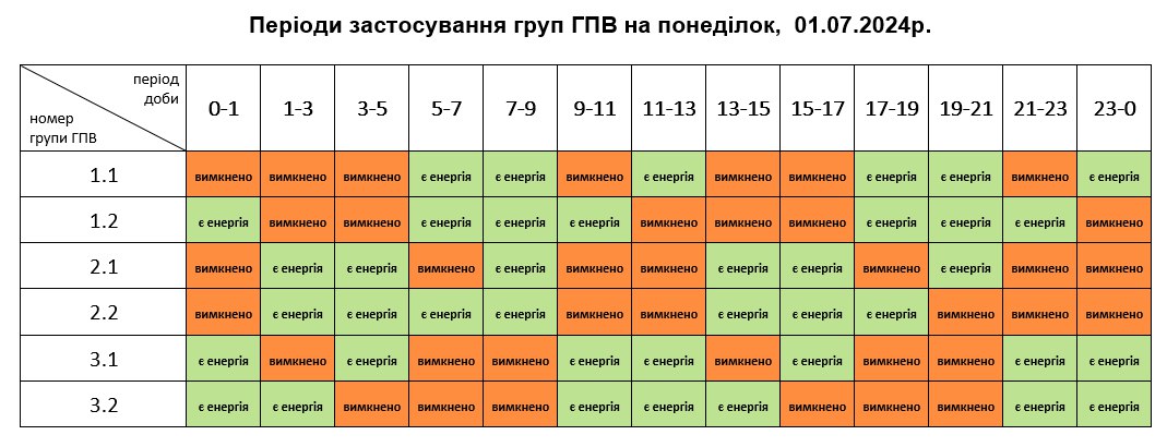 1 липня з 16 до 24:00 буде збільшено кількість черг графіків погодинних відключень світла.