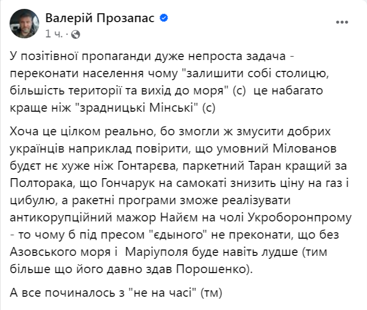 В 22-му, в самі тяжкі дні - такої подачі у нас не було, а зараз, якось "раптом", з усіх утюгів нам ******** оцю полову.