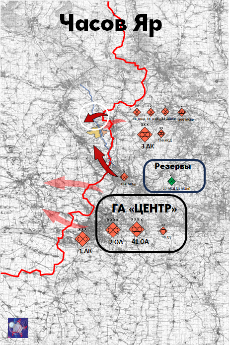 Щось схоже відбувається /зараз/ під Торецьком, але з нюансами, які не дають оркам вирішити завдання. Угрупування, що наступає в лоб на Часів Яр дев'ять місяців не могло вийти на берег "водної перешкоди" (Канал).