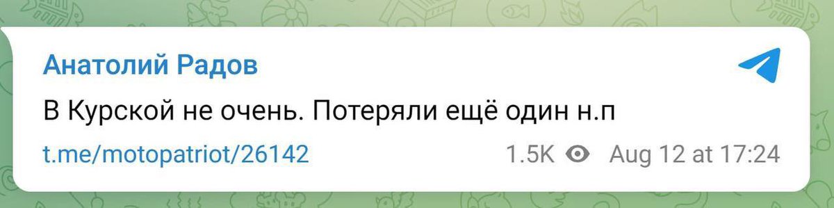 Там зазначили, що 12 серпня влада Курської області заявила, що втратила контроль над 28 населеними пунктами.