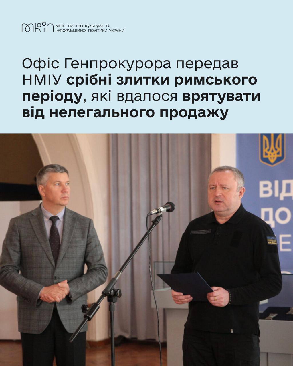 ОГП передав Нацмузею історії України три срібні злитки римського періоду вартістю 3,5 млн гривень