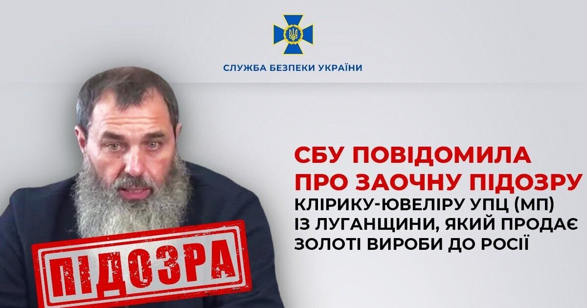СБУ повідомила про заочну підозру клірику-ювеліру УПЦ (МП) з Луганської області, який продає золоті вироби до Росії.