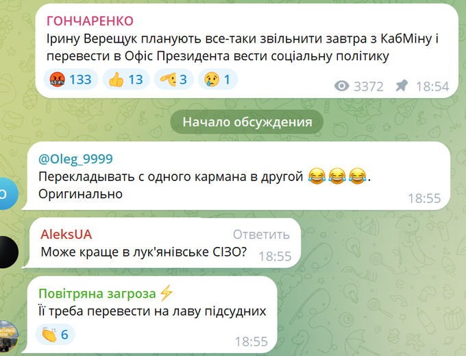Натомість, за відставку Ірини Верещук з посади віцепрем’єр-міністра - Міністра з питань реінтеграції тимчасово окупованих територій України голосів не знайшлося. Вона поки лишається на посаді. Також не відтримала ВР рішення про звільнення Коваля з посади голови Фонду держмайна.