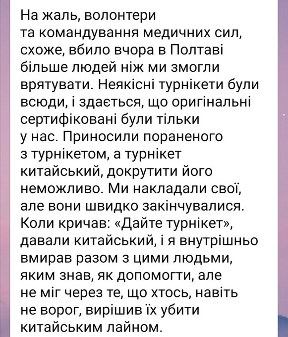 Медики врятували багатьох, але виявилися не готовими і не забезпеченими відповідними медичними засобами надання допомоги одразу великий кількості тяжко поранених у польових умовах.