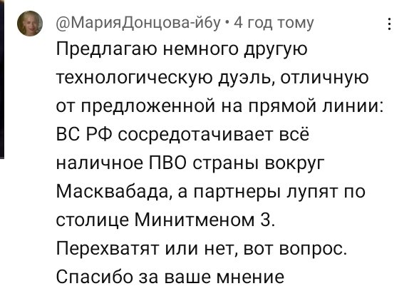 "Ви бачите із ким ми маємо справу? Сьогодні товариш із Кремля сказав, що Росія пропонує технологічну дуель. ... Путін сказав, що Росія вдарить "Орешником" кудись по Києву, а вони (Захід. - Ред.) нехай поставлять протиповітряну оборону. Ну, і подивимось, що буде.