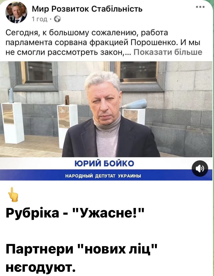«Зеленський - це проєкт кремля, це реванш Антимайдану. Незабаром в українських державних органах з'являться представники ФСБ та ГРУ МО росії, які візьмуть у свої руки основні важелі впливу на ситуацію в країні.