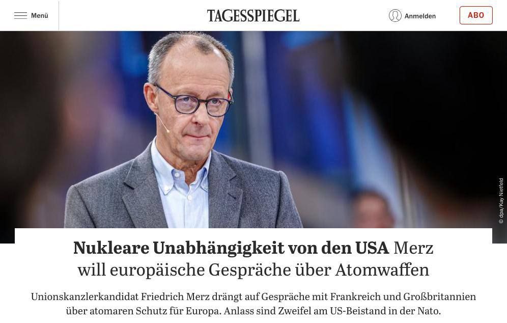 Окрім цього, Мерц заявив про необхідність обговорити із Великою Британією та Францією можливість перебування Німеччини під їхнім ядерним захистом.