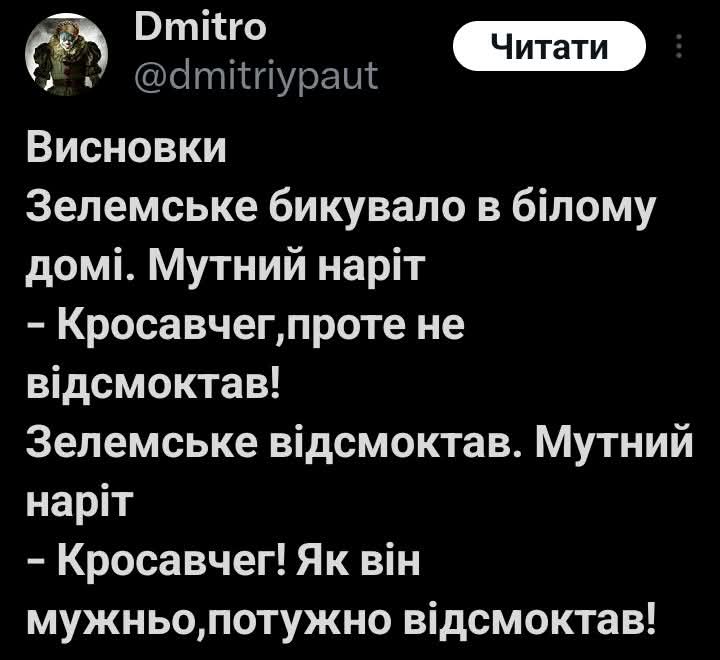 А щодо Трампа, вже не один раз писав що він маразматик із деменцією.А зюзя не правий у тому, що він прекрасно знав що Трамп на це не підпишеться, тим самим він свідомо зірвав підписання угоди.