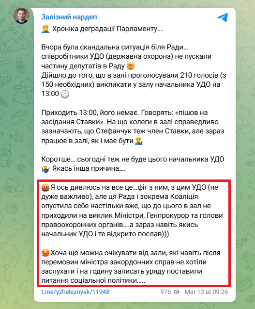 Про це повідомив нареп Олексій Гончаренко у телеграмі, передає Цензор.НЕТ.