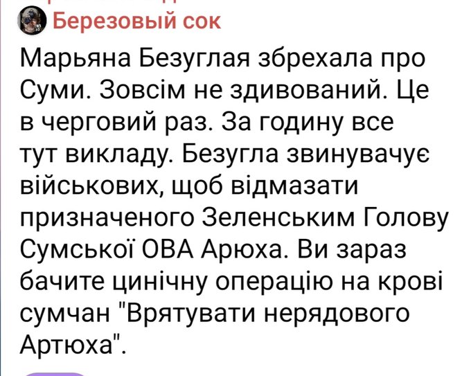 "Росія обстріляла центр Сум на Вербну неділю. Звернення до Сирського і окремо до командувача ТрО: не збирайте військових на нагородження, а тим більше у цивільних містах, — знову росіяни мали інформацію про скупчення. І на полігонах досі шикування...", - написала Безугла.