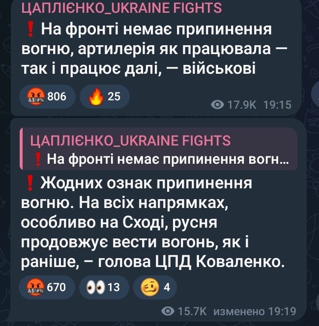 Нагадаємо, сьогодні, 19 квітня, російський диктатор Володимир Путін нібито оголосив про Великоднє перемир'я, яке діятиме із 18 години за московським часом 19 квітня до нуля годин 21 квітня.