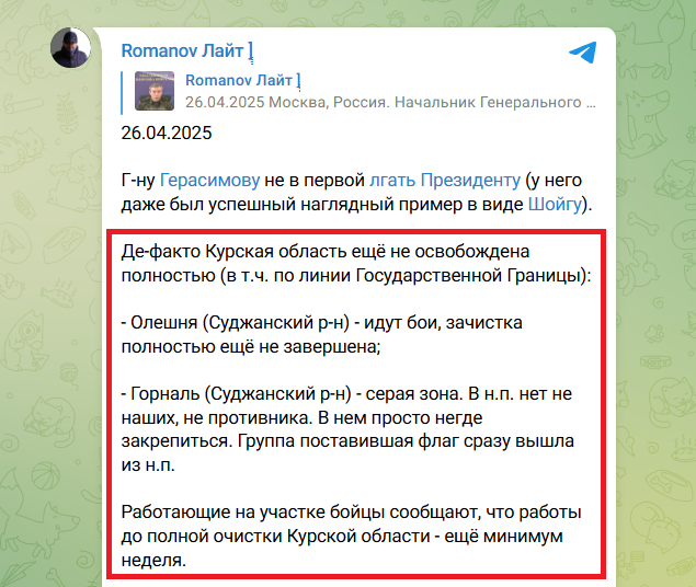 Нагадаємо, сьогодні Герасимов доповів Путіну про нібито повне "звільнення" Курщини.